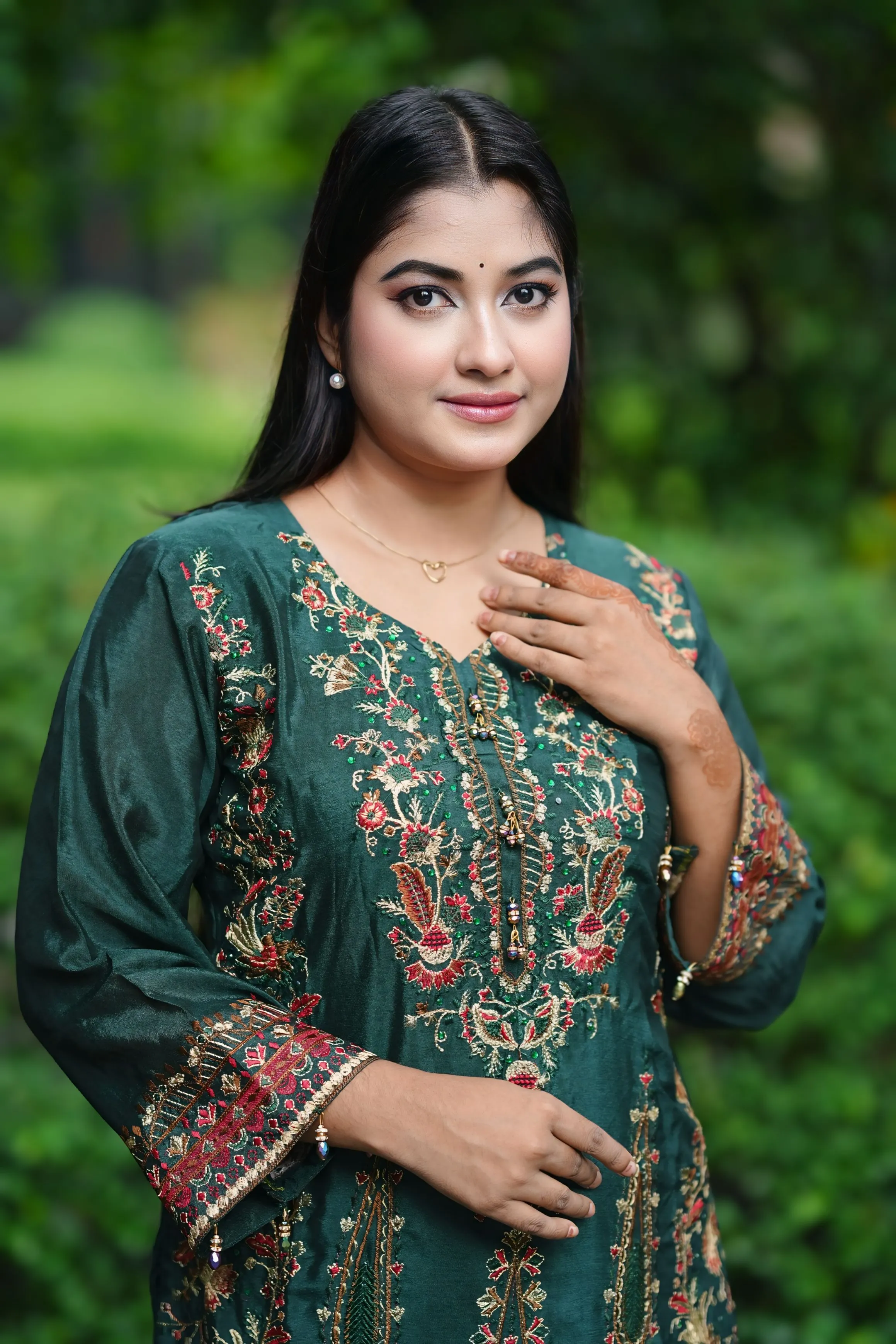 ৳ 750 offক্লফ সিল্কের নরম সবুজ এই থ্রি-পিসটিতে রয়েছে মনোহর এম্ব্রয়ডারি,